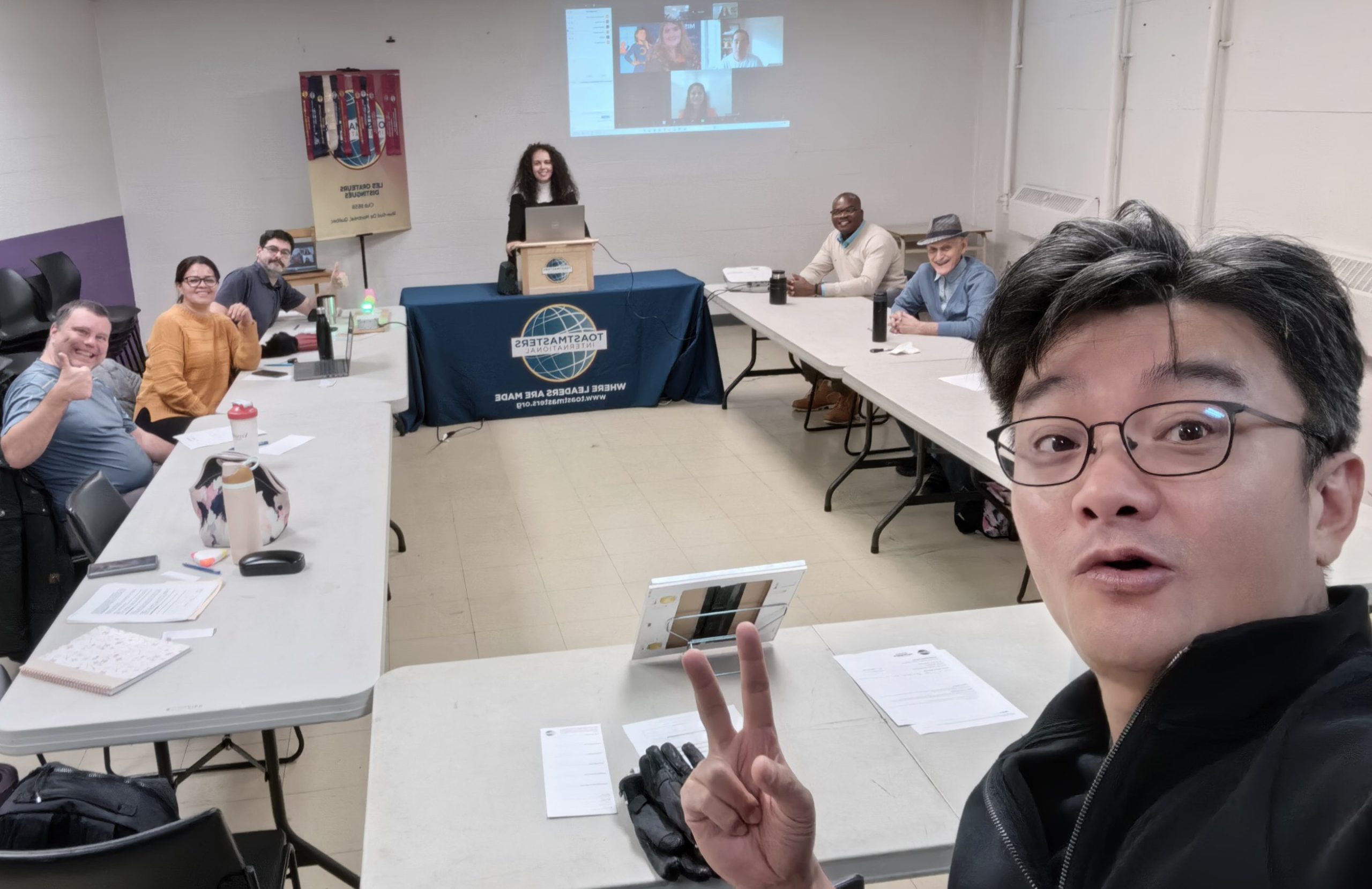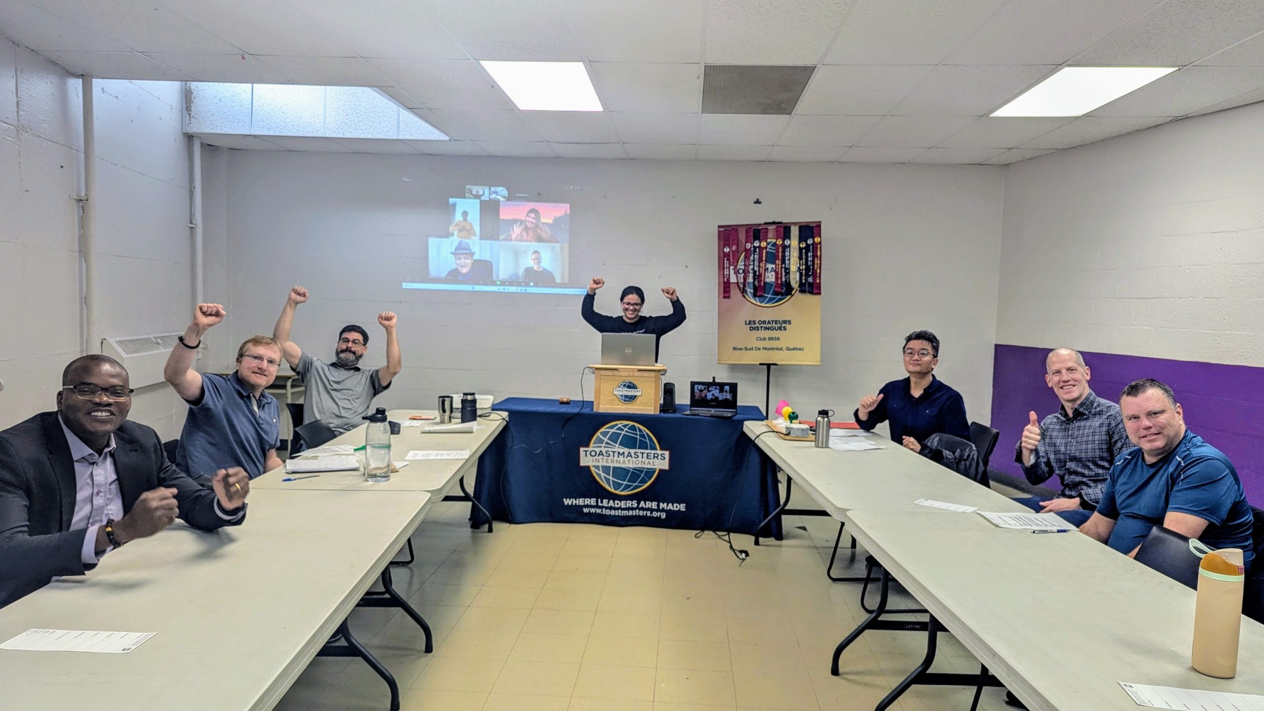 👥 Étaient également présents plusieurs leaders de Toastmasters International : Lise Blondin, directrice du District 61, Raymond Brisebois, directeur de la croissance des clubs du même district, et plusieurs autres.